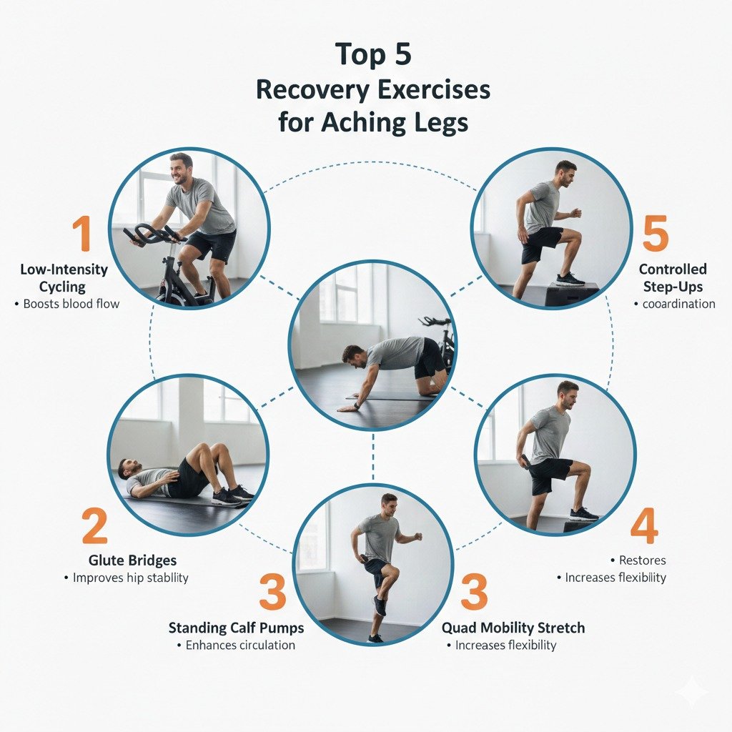 Targeted low intensity movement accelerates circulation and restores joint mobility without adding stress. The following exercises support recovery: